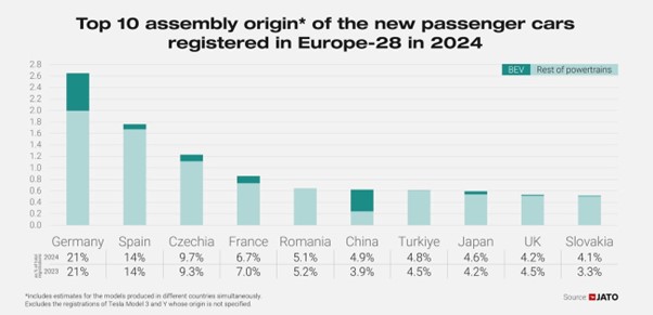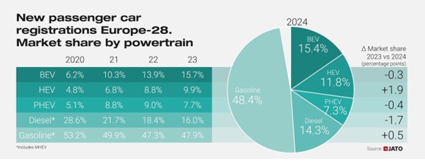 Auto Finance Sponsored by Auto Finance News European new car growth driven by hybrids and Chinese brands Published: 4th February 2025 Share Europe’s new passenger car market grew by 0.9% last year. This is according to new data from JATO Dynamics, which found that 12,909,741 new passenger cars were registered across Europe-28 in 2024. Despite the slight uptick in registrations, 2024 was the fifth year of muted registrations figures when compared to pre-pandemic levels. Europe’s car market has shrunk by almost 2.9 million units since the arrival of the pandemic in 2020. “Overall, when you consider the range of challenges facing Europe’s automotive industry, the results for 2024 are not overly negative,” commented Felipe Munoz, Global Analyst at JATO Dynamics. “However, you would expect any other industry to have shown significant signs of recovery by now, and there is very little evidence that the automotive industry will return to the pre-pandemic reality. The higher cost of vehicles, the rise of working from home, inflationary pressure on wages and the emergence of new transportation solutions are among the reasons why Europeans have stopped buying brand new cars,” Munoz continued. Fewer electric cars, more hybrids 2024 was not a positive year for sales of electric vehicles (EVs) in Europe, with the slowdown in growth that the industry began to see signs of in 2022 resulting in a drop in sales last year. Sales grew +107% year on year between 2019 and 2020, +63% between 2020 and 2021, +29% between 2021 and 2022, and +28% between 2022 and 2023. However, 1,985,996 units of new passenger EVs were registered in EU28 in 2024, marking a year-on-year decline of 1.2%. The drop in registrations was also reflected in the market share of BEVs in Europe, which decreased slightly from 15.7% in 2023 to 15.4% last year. A lack of clarity about incentives for BEVs, the high average retail price of new models and low residual values – as well as concerns about charging infrastructure across the continent – are among the reasons behind the decline. Despite the drop recorded last year, the situation is expected to improve over 2025 as the average price of a BEV continues to fall in Europe, largely due to the introduction of less expensive models from mainstream automakers. Norway maintained its poll position in 2024, with BEVs holding the largest market share (88%). It was followed by Denmark (51%), Sweden (35%) and the Netherlands (34.7%). Denmark, Belgium, Norway, Luxembourg and the Netherlands were the five countries in Europe where BEVs gained the most market share year on year, while the opposite occurred in Germany, Ireland, Finland, Romania and Sweden. From a manufacturer perspective, the BEV market did not change significantly in 2024. The Volkswagen Group remained the top-seller, with more than 427,000 units of its electric models registered in 2024. Its share of the BEV market fell slightly from 22.2% in 2023 to 21.5% last year and remains below its share of the wider new passenger vehicle market, which stood at 26.1% in 2024. Tesla followed in second position, despite increased competition from other players and its Model 3 being unable to offset significant losses while consumers waited for the arrival of the new Model Y. In third place came Stellantis, which remained in the top three producers of BEVs despite posting a 10% drop in volumes. Elsewhere, BEVs made up a greater part of the sales mix for BMW Group and Geely last year. Hybrid vehicles: a halfway house? Although not all carmakers offer fully hybrid models, the segment recorded year-on-year growth of 21% between 2023 and 2024, and all carmakers that offered fully hybrid vehicles posted growth last year. Out of a total market of 1,529,806 units registered in 2024, Toyota accounted for 738,500 units. Almost one in two hybrid vehicles registered in Europe in 2024 had a Toyota or Lexus logo, and 75% of registrations of Toyota passenger cars were hybrid vehicles. Renault Group followed with almost 300,000 units, up 49% year on year, while Hyundai-Kia, Nissan and Honda accounted for the rest of the top five. Volkswagen Group, Stellantis, BMW Group, Mercedes-Benz and Geely were a few of the manufacturers absent from this segment. Hybrids have become increasingly popular due to the comparatively high average retail price of BEVs and concerns about charging infrastructure. According to a recent JATO study, the average retail price of a hybrid available in the Eurozone in 2024 was €42,222, compared to €62,709 for a BEV. China continues to grow in influence According to JATO estimates, almost 21% of total new passenger vehicles registered in EU28 in 2024 came from plants in Germany. However, Germany lost market share in this respect to Czechia, the third largest country of origin for vehicles in Europe, behind Spain. France came in fourth position, despite volumes from French factories falling by 3%, while Romania rounded off the top five. The most significant trend was China becoming the sixth-largest country of origin for new vehicles registered in Europe. Between 2023 and 2024, it outsold the United Kingdom, Turkey, Japan and South Korea. “Last year, more of the cars registered in Europe came from China than Japan,” Munoz commented. “China’s influence in Europe – both from Chinese OEMs and Chinese-made vehicles – is growing steadily. Their products are highly competitive, but it remains to be seen just how much the introduction of tariffs will impact its growth,” Munoz continued. SAIC Motor, Geely, BYD, Chery, and BMW Group were the top best-selling companies of Chinese assembly origin cars in Europe last year. Lisa Laverick Editor - Finance Connect Sign up to our newsletter Featured Stories NewsAutotrader to add ‘Reservation Request’ option as part of Deal Builder overhaul NewsRightcharge sets out ‘Transparency Promise’ as part of brand refresh NewsGerman car market set for 2% rise in 2026, says VDA