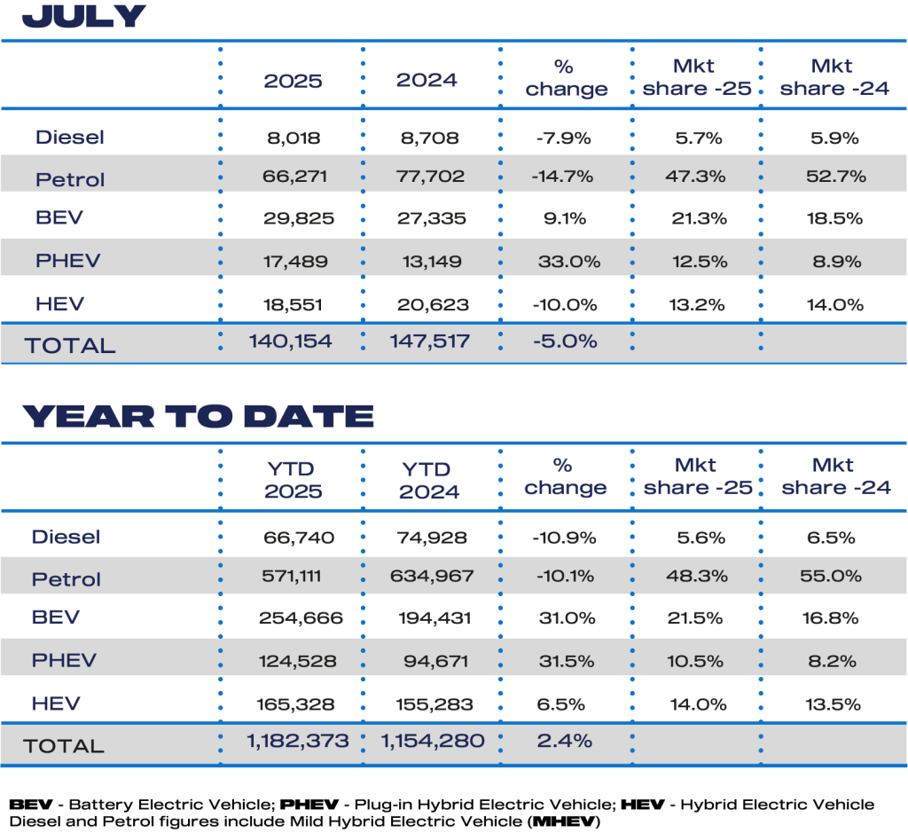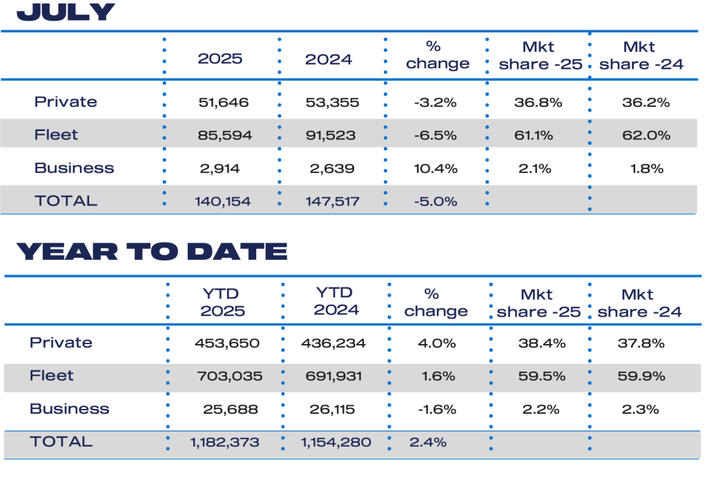 Auto Finance Sponsored by Auto Finance News New car registrations stall in July but recovery expected Published: 5th August 2025 Share New car registrations in the UK dropped -5.0% in July to 140,154 units, marking the weakest July performance since 2022 and underscoring the continued volatility of the automotive market amid wider economic uncertainty. According to new data from the Society of Motor Manufacturers and Traders (SMMT), the sector remains -10.8% down compared to pre-pandemic levels in 2019. Registrations from both private and fleet buyers fell -3.2% and -6.5% respectively, with 51,646 private vehicles and 85,594 fleet vehicles registered. Business registrations were a rare bright spot, rising 10.4% to 2,914 units. Only a few vehicle segments defied the downturn. Dual Purpose (+13.9%), Mini (+14.7%), and Luxury Saloons (+114.6%) recorded growth, while most other segments saw declines. Electrified vehicles outperformed the broader market, with plug-in hybrid electric vehicles (PHEVs) surging 33.0% and battery electric vehicles (BEVs) climbing 9.1% year-on-year. However, BEV growth in July was subdued compared to the 34.6% increase seen in the first half of 2025, making it the second-weakest month for BEVs this year following April’s tax shake-up. A key factor holding back BEV momentum according to the SMMT appears to be uncertainty over the Government’s newly introduced Electric Car Grant (ECG). The scheme, which promises up to £3,750 off qualifying vehicles, has yet to confirm eligible models – prompting some prospective buyers to delay purchases. BEVs secured a 21.3% market share in July, up from 18.5% in the same month last year, but still below the 28% target set by the Zero Emission Vehicle (ZEV) Mandate. Industry leaders continue to warn that insufficient consumer incentives and costly fiscal measures, such as the Expensive Car Supplement (ECS) on Vehicle Excise Duty – estimated to cost BEV buyers over £360 million this year – are dampening demand. They argue that increased support for private BEV buyers is essential to accelerate uptake, meet climate goals, and boost the UK’s automotive sector. Sales of hybrid electric vehicles (HEVs) fell -10.0% to 18,551 units, while combined petrol and diesel registrations plummeted -14.0% to 74,289 units, though they still made up 53.0% of July’s market. Despite the dip in July, the year-to-date market remains resilient, up 2.4% with 1.18 million vehicles registered so far in 2025 — including over 250,000 BEVs. Looking ahead, the SMMT has revised its annual forecast slightly upward to 1.9 million units, with BEVs expected to represent 23.8% of total sales — reflecting cautious optimism about a recovery. Mike Hawes, Chief Executive of the SMMT, said: “July’s dip shows yet again the new car market’s sensitivity to external factors, and the pressing need for consumer certainty. “Confirming which models qualify for the new EV grant, alongside compelling manufacturer discounts on a huge choice of exciting new vehicles, should send a strong signal to buyers that now is the time to switch. That would mean increased demand for the rest of this year and into next, which is good news for the industry, car buyers and our environmental ambitions.” John Cassidy, Director of Sales at Close Brothers Motor Finance, echoed the cautious optimism: “Despite a slight dip in new registrations, there’s cause for optimism. “EVs are increasingly grabbing a larger share as private demand finally begins to rise. The return of grants for new EVs should tempt even more consumers to make the switch.” However, Cassidy warned that incentives alone are not enough: “The Government must match this incentive with strong investment in the UK’s charging infrastructure to make sure it can handle widespread adoption, which remains a key barrier holding many consumers back.” Lisa Laverick Editor - Finance Connect Sign up to our newsletter Featured Stories NewsElectric vehicles take record share of Fleet Alliance orders NewsRetail fleets work harder than any other sector, Lightfoot finds NewsiVendi white paper examines future of motor finance Auto Finance