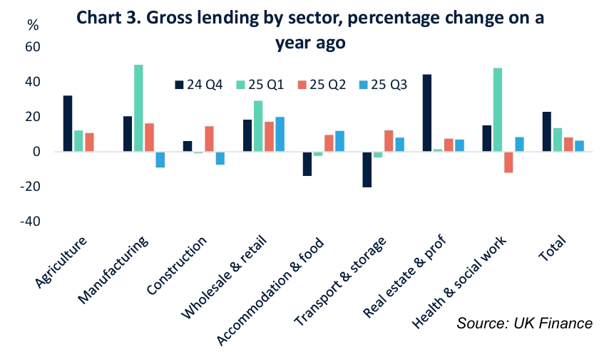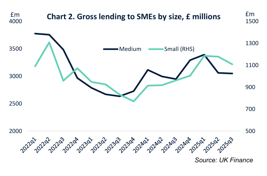 Market Data Sponsored by Market Data UK SME lending rises 6% in Q3 2025 but growth slows Published: 12th December 2025 Share Lending to UK small and medium-sized enterprises (SMEs) rose for the seventh consecutive quarter in Q3 2025, according to UK Finance’s latest Business Finance Review. Gross lending by the main High Street banks reached just under £4.2 billion in the three months to September – a level above the average recorded in both 2023 and 2024. Year on year, lending was 6.4 per cent higher than the same period in 2024, although this compares with 8.3 per cent growth in Q2 and marks the slowest expansion since the lending recovery began in early 2024. This cooling in momentum had been anticipated, with earlier reviews highlighting a slowdown in new loan approvals, particularly among medium-sized firms. UK Finance notes that the broader economic environment also weighed on activity: business sentiment weakened in the run-up to the Autumn Budget, amid concerns over the economic climate, political uncertainty and the possibility of further pressure on public finances. The SME Finance Monitor reported in Q3 that the proportion of SMEs worried about the economic outlook had surpassed 2020 levels. Lending trends across business sizes showed a clear divergence. For the smallest companies – those with turnover below £2 million – lending “turned a corner” and was 15 per cent higher than a year earlier, reflecting the strong loan approvals seen throughout 2025. Lending to medium-sized businesses, however, was broadly flat over the quarter and only three per cent higher year on year. This aligns with a downward trend in approvals for medium-sized firms that has persisted since the beginning of the year. Sector data also pointed to a slowdown. Year-on-year growth in gross lending eased across most industries compared with the first half of 2025. Manufacturing saw a marked drop, which UK Finance suggests may be linked to activity pulled forward earlier in the year ahead of US tariff and duty changes. Real estate also recorded weaker lending, likely influenced by recent stamp duty announcements. By contrast, accommodation, food services and retail experienced a modest pickup, reflecting the typical seasonal uplift ahead of the Christmas trading period. New finance approvals further illustrated the softer backdrop. The overall value of approvals – spanning loans and overdrafts – was flat compared with Q3 2024, the weakest growth in two years. The number of approvals rose by just over ten per cent, but this was well below the strong pace seen in the second half of 2024. Overdraft approvals, which surged last year as businesses faced higher input and labour costs, have now dropped back and remain significantly below pre-pandemic levels. Loan approvals, however, retained a degree of momentum, rising nearly 12 per cent bynumber, although the value of loans approved fell slightly. This pushed the average loan size down 12 per cent to just under £250,000, driven largely by weaker demand from medium-sized businesses. Small firms continued to buck the trend, with the number and value of loans to businesses in this group rising 21 per cent and 25 per cent respectively. Despite the more cautious landscape, industry sentiment remains broadly positive about the role that finance providers can play. Gary Thompson, sales director at Asset Advantage, said: “It is really encouraging to see yet another rise in SME lending, which certainly mirrors what we are seeing on the ground. “Speaking with commercial brokers, it is clear that these enterprises are actively pursuing funding that helps them grow – whether that’s through asset finance or expansion-based lending. In fact, our latest data points to asset finance and business acquisitions dominating funding demands in the coming 12 months. As we head into the New Year, this is hugely positive given the important role SMEs play as the engine room of the UK economy. “Lenders and funders have a critical role to play in facilitating this by making sure they are responsive to the needs of these businesses. Rather than restrictive appetites to risk, we must be open-minded, pragmatic and willing to look outside the box to assist SMEs, support transactions and give brokers the tools they need. In doing so, we can give SMEs the confidence to deploy flexible funding for growth and expansion, rather than plugging short-term gaps.” Lisa Laverick Editor - Finance Connect Sign up to our newsletter Featured Stories Market DataCBI survey points to brighter 2026 for financial services sector Corporate Member Market DataFive-year peak in UK SMEs planning growth in 2026 Market DataPrivate sector activity set to shrink further, CBI says