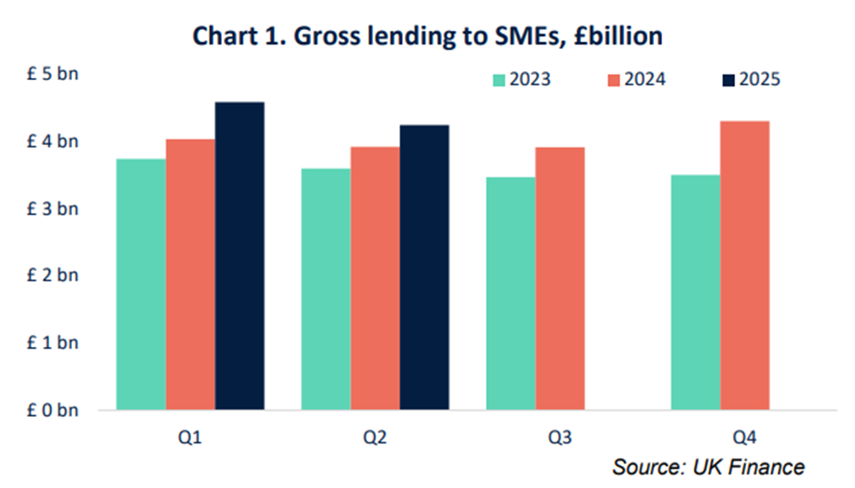 Market Data Sponsored by Market Data UK SME lending rises 8%, UK Finance research shows Published: 11th September 2025 Share Gross lending to small and medium-sized enterprises (SMEs) by the UK’s main high street banks climbed to £4.24 billion in the second quarter of 2025, up 8% compared with the same period last year, according to the latest UK Finance Business Finance Review. The report highlights particularly strong growth among small businesses – those with annual turnovers of up to £2 million – where lending surged by 28% year-on-year. New finance approvals also reflected this trend, rising by 7% in number and 11% in value compared with Q2 2024. For small businesses specifically, the number of approved loans jumped 14%, while the total value increased 15%. Despite higher loan activity, overdraft demand has weakened, with the number of approvals falling to their lowest level in a year. The review also notes a shift in how SMEs are managing their finances. The total amount held in business accounts dropped 2.4% compared to last year and remains about 20% lower than during the pandemic peak in 2021. UK Finance suggests this is partly because firms are holding less cash in instantly accessible accounts, relying instead on existing credit facilities and deposits to manage short-term challenges. Looking ahead, the report points to economic uncertainty as a key factor shaping business finance decisions in the second half of 2025. Factors such as trade risks, weak consumer confidence, and anticipation around the Autumn Budget are expected to weigh on lending activity, although the impact will vary by sector. Export-focused businesses could face additional tariff pressures, while firms with larger workforces may be more exposed to rising employment costs and regulatory changes. David Raw, Managing Director of Commercial Finance at UK Finance, said: “It is encouraging to see lending up year-on-year, especially for smaller businesses. “There have also been important changes announced in the Government’s small business strategy this summer, including the extension of the Growth Guarantee Scheme, cracking down on late and poor payment practices, and the launch of the Business Growth Service. We’re committed to continuing to work with businesses and policymakers to help SMEs grow and thrive.” Gary Thompson, Sales Director at Asset Advantage, added: “Given the critical role of SMEs in the UK economy, it is hugely positive to see lending increase. “Such is the current climate, we need lenders to keep coming to the table and provide suitable support. Encouragingly, alongside the established big retail banks, more specialist funders and providers are actively filling gaps in appetite and risk not met by the rigid processes of the larger banks. “While some businesses may be looking to fund more short-term needs instead of strategic investments, we have been encouraged to see businesses who are looking to expand, invest and scale. It’s all about giving SMEs the confidence to push ahead and providing commercial brokers with the right tools to facilitate these deals.” Lisa Laverick Editor - Finance Connect Sign up to our newsletter Featured Stories Market DataUK economy misses forecasts with sluggish end to 2025 Market DataUS SME profitability forecasts drop nearly 50% year-over-year Market DataBank of England holds interest rates at 3.75%