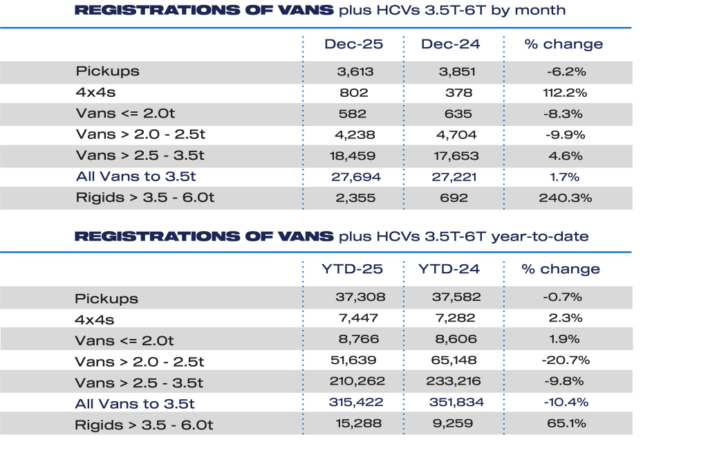 Auto Finance Sponsored by Auto Finance News UK van market shrinks in 2025 despite strong EV growth Published: 8th January 2026 Share The UK’s new light commercial vehicle (LCV) market contracted sharply in 2025, falling 10.3% to 315,281 registrations, according to new data released by the Society of Motor Manufacturers and Traders (SMMT). The decline reflects a year of subdued business confidence and a challenging economic backdrop, with fleet renewal down in every month except December, which saw a modest 1.7% uptick. Source: SMMT Segment performance was overwhelmingly negative. Medium-sized vans posted the steepest drop at –20.7% (51,639 units), while large vans, which continue to dominate the market with a 66.7% share, fell –9.8% to 210,262 units. Pick-ups also ended the year slightly down (–0.7%, 37,308 units) despite a surge in early 2025 as operators sought to get ahead of a tax rule change that now treats double cab models as cars for benefit-in-kind and capital allowance purposes. Only lower-volume segments bucked the trend: small vans rose 1.9% to 8,766 units, and 4x4s climbed 2.3% to 7,447. In contrast to the wider downturn, demand for battery electric vans (BEVs) surged 36.2%, reaching a record 30,169 registrations. Manufacturers now offer more than 40 zero-emission van models – over half of all options available – helping push EV uptake higher even as the broader market shrank. Source: SMMT However, the growth remains well below the mandated 16% EV share for 2025, with BEVs accounting for just 9.5% of registrations. To close the gap, manufacturers collectively provided nearly £400 million in discounts last year, underscoring the strain created by regulatory targets that are outpacing real-world demand. Insufficient public charging suited to vans, high production costs, and long delays connecting depots to the electricity grid continue to impede adoption. While government measures such as the extension of the Plug-in Van Grant, the new Depot Charging Scheme and planned reforms to ease charger installation are expected to help, the mandate jumps to 24% in 2026, prompting industry calls for urgent reassessment. SMMT Chief Executive Mike Hawes said the figures highlight mounting challenges for both industry and operators. “2025’s new van market reflects a tough economic environment which constrained fleet investment. While rising EV uptake is encouraging, it has come at a huge cost to industry and remains significantly adrift of ambition. Government’s upcoming review must acknowledge the unique challenges facing the light commercial vehicle sector and the additional action required, else the gap between market regulation and reality will continue to widen.” Lisa Laverick Editor - Finance Connect Sign up to our newsletter Featured Stories NewsGovernment launches ‘go electric’ campaign NewsTrends shaping mobility, logistics & manufacturing in 2026 NewsArval subsidiary Greenval insures 1m vehicles Auto Finance