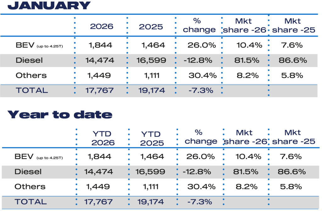 Auto Finance Sponsored by Auto Finance News UK van market slumps in January as EV targets loom large Published: 9th February 2026 Share The UK’s new light commercial vehicle (LCV) market suffered its weakest January start in more than a decade as registrations fell sharply amid tough economic conditions and mounting pressure to accelerate the shift to electric vehicles. New LCV registrations declined by 7.8% in January 2026 to 17,562 units, according to figures published by the Society of Motor Manufacturers and Traders (SMMT). It marks the weakest January performance since 2012, reflecting subdued business confidence and constrained fleet investment. The downturn was driven primarily by a collapse in demand for pickup trucks, with registrations plunging 57.0% to 1,206 units. The fall follows recent government fiscal changes reclassifying double-cab pickups as cars for benefit-in-kind and capital allowance purposes – a move the industry warned would significantly increase costs for buyers. Medium van registrations also dropped sharply, down 27.4% to 2,547 units, while the small van segment fell 39.8% to just 402 vehicles. Only large vans and 4x4s bucked the trend, posting growth of 10.0% to 12,696 units and 33.9% to 711 units respectively. Against this backdrop, electric van uptake continued to grow but remains well short of regulatory ambition. Battery electric van registrations rose by 26.0% to 1,844 units in January, taking a 10.4% share of the market. However, this remains far below the mandated 24% market share target for 2026, meaning demand would need to more than double within a year to stay on track. The challenge is compounded by a weakening overall market. The latest industry outlook for 2026 has been revised down to 321,000 new LCV registrations, a modest 1.9% increase on 2025 but a notable downgrade from the 335,000 units forecast in October. While battery electric van volumes are still expected to grow by more than 50% this year, their projected market share has been cut to 13.1%, down from the previously expected 14.0%. Industry leaders say that, without further government intervention, the pace of electrification will struggle to match regulatory expectations. Although the extension of the Plug-in Van Grant to 2027 has been welcomed, uncertainty over support beyond April this year continues to weigh on investment decisions. New initiatives such as the Depot Charging Scheme and proposed planning reforms for private charger installations are expected to help, but significant barriers remain, including high energy costs, limited van-suitable public charging infrastructure and lengthy delays in securing grid connections for depots. Mike Hawes, chief executive of the SMMT, said the figures highlight the growing disconnect between policy ambition and market reality. “January’s decline in new van uptake reflects ongoing economic and fiscal conditions which are limiting demand, particularly for pickups, as industry had warned,” he said. “Rising EV uptake is encouraging but delivering the UK’s world-leading ambition is coming at huge cost to industry amid overall market contraction. With an even steeper 2026 target that is further still from real-world demand, government’s review of the transition must come urgently, recognising additional action is needed to deliver on ambition.” Lisa Laverick Editor - Finance Connect Sign up to our newsletter Featured Stories NewsCA Auto Bank and Geely partner to drive French market entry NewsBYD UK achieves record Q1 sales surge in 2026 NewsEU car market grows 4% in Q1 as EVs gain ground Auto Finance