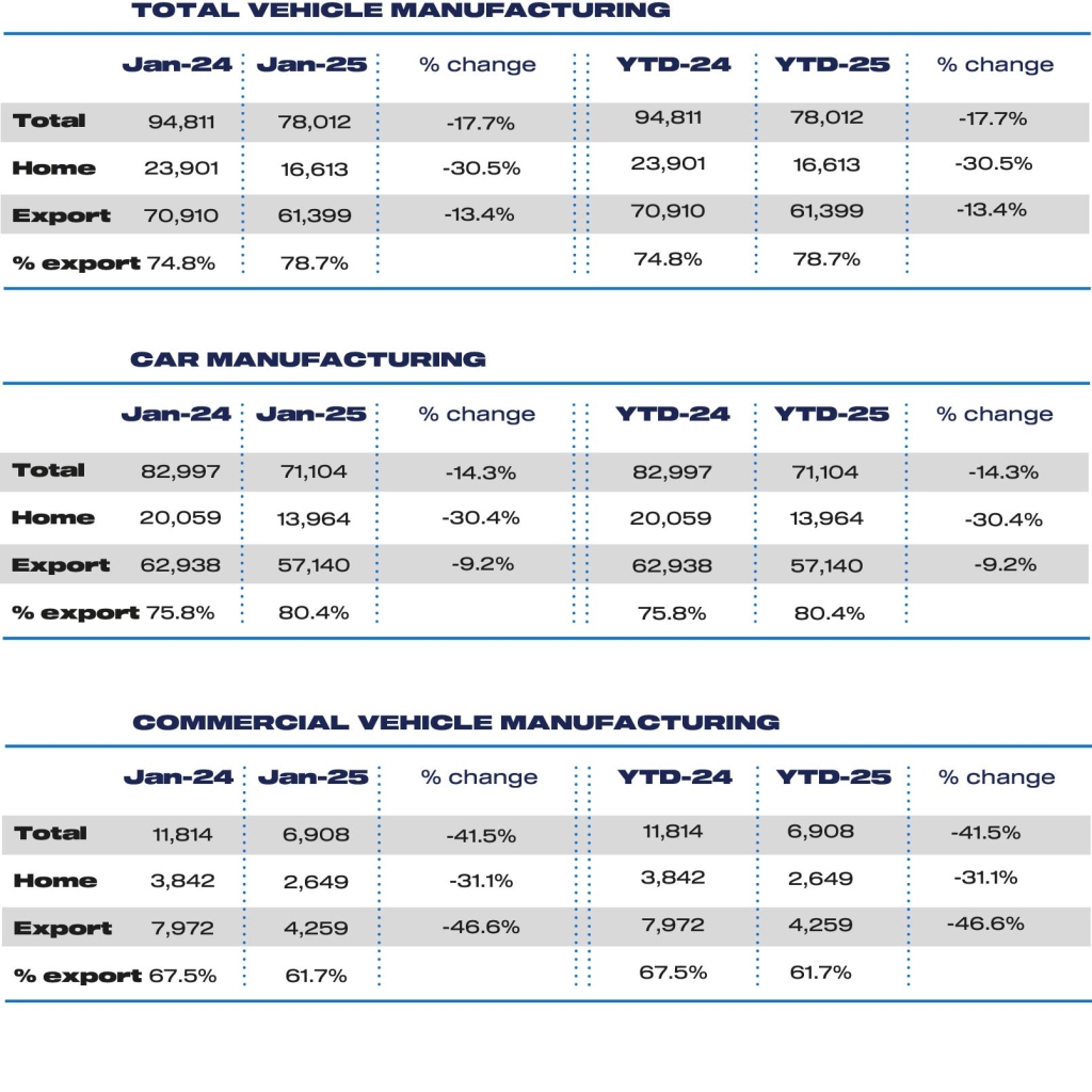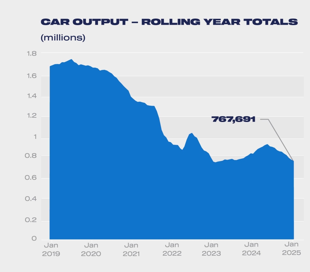 Auto Finance Sponsored by Auto Finance News UK vehicle production down in January Published: 27th February 2025 Share UK vehicle production declined by -17.7% in the first month of the year, with factories turning out 71,104 cars and 6,908 commercial vehicles (CVs) for a total of 78,012 units, according to the latest figures published today by the Society of Motor Manufacturers and Traders (SMMT). The performance follows a bumper January last year, when car and CV output surged by 21.0% and 27.5% respectively, and reflects weakness in key markets, notably the EU, China and the UK itself, combined with planned model changeovers. Source: Society of Motor Manufacturers and Traders (SMMT) UK production of battery electric (BEV), plug-in hybrid (PHEV) and hybrid (HEV) vehicles increased 1.5% to 30,028 units, accounting for 42.2% of all cars made in January, the highest monthly performance since December 2022 (47.2%). The lion’s share of overall car production (80.4%) was for export, although volumes slipped -9.2% to 57,140 units. Production for the UK market, meanwhile, fell -30.4% to 13,964 units. Source: Society of Motor Manufacturers and Traders (SMMT) The EU, the largest global market for British-built cars, took more than half (52.0%) of car exports, followed by the US (18.6%), China (6.2%), Turkey (3.5%) and Japan (3.4%). While shipments to the EU and China fell by -11.2% and -46.3%, those to the US, Turkey and Japan all rose, up 12.4%, 36.9% and 8.1% respectively. Export demand also continued to drive CV production, accounting for 61.7% of UK van, truck, taxi, bus and coach production. 4,259 units were shipped overseas, a year-on-year decline of -46.6% with 97.1% destined for the EU. Volumes for the UK market also fell, down by -31.1% to 2,649 units. The performance must be set in context, however, with a particularly strong January last year – which saw the best CV output since 2008 – compounding the decline. Source: Society of Motor Manufacturers and Traders (SMMT) The news comes amid plant restructuring and slower than anticipated rollout of new models as manufacturers respond to softening demand in the UK and other key markets. Given the significant investments at stake, the auto industry is urging government to ensure the needs of the UK automotive sector are at the core of its forthcoming industrial and trade strategies. According to the SMMT, these strategies must be combined with measures to ensure a healthy domestic market, especially for EVs – a key investment consideration – and quick release of the £2 billion promised by government to boost the sector via the Automotive Transformation Fund. Doing so would help shore up the competitiveness of the UK’s largest exporter of manufactured goods, a sector with the potential to deliver £50 billion in UK growth over the coming decade. Mike Hawes, SMMT Chief Executive, said, “UK vehicle producers face a perfect storm of global trade uncertainty, challenging manufacturing conditions and a market transition which is proving tougher than expected. “The sector is doing all it can to keep production plans on track but needs government to ensure automotive is at the heart of its forthcoming industrial and trade strategies with promised funding invested as soon as possible. Doing so will help ensure our competitiveness and safeguard the billions of pounds of investment, jobs and economic growth which is now at stake.” Lisa Laverick Editor - Finance Connect Sign up to our newsletter Featured Stories NewsRising fuel prices may accelerate fleet shift to EVs, says FleetCheck NewsCorporate fleets drive EV uptake in Europe NewsICE vehicles still lead as EV interest grows, TARGOBANK study finds Auto Finance