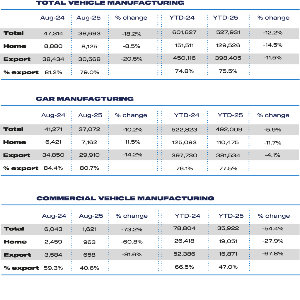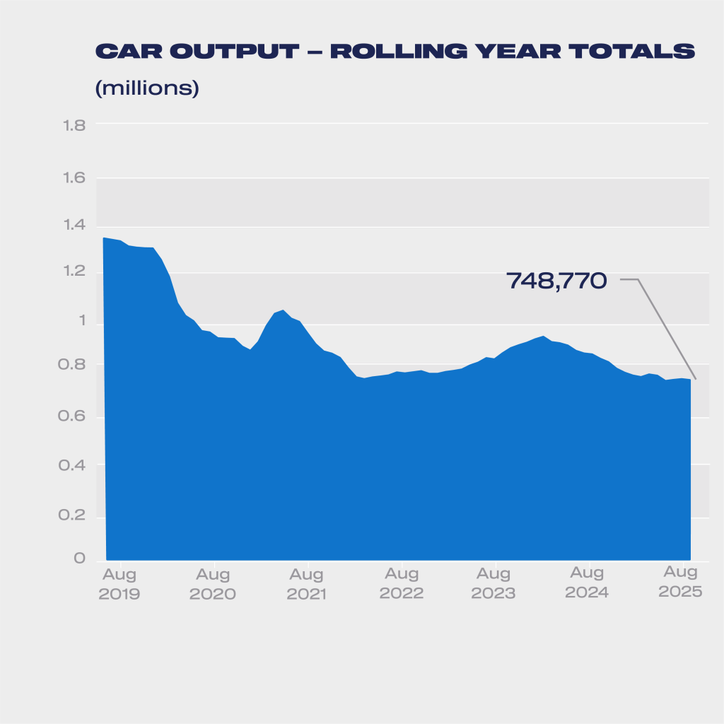 Auto Finance Sponsored by Auto Finance News UK vehicle production falls back in August Published: 26th September 2025 Share UK car and commercial vehicle output slipped sharply in August, breaking a two-month run of growth, according to the latest figures released by the Society of Motor Manufacturers and Traders (SMMT). A total of 37,072 cars were built in the month, down -10.2% on the same period last year, as factories paused for routine maintenance and retooling during the industry’s traditional “summer shutdown.” Including vans, trucks and buses, combined UK vehicle production declined -18.2% to 38,693 units – the weakest August since 1956. The fall comes against a backdrop of soft demand in the EU, rising costs, ongoing model changeovers and sluggish UK economic growth. Industry leaders also warned that September’s figures are likely to be affected by the recent cyberattack on Britain’s biggest automotive employer. Despite the decline in overall car output, there was strong growth in electrified models. Hybrid, plug-in hybrid and battery-electric vehicle production surged 40.9% to 16,830 units, representing 45.4% of total output – the second-highest monthly share on record. In the year to date, more than 200,000 electrified cars have rolled off UK production lines, up 3.7% on 2024. Exports, which account for more than four in five UK-built cars, fell -14.2% to 29,910 units. Production for the domestic market, however, rose 11.5% to 7,162 units. The commercial vehicle sector endured the steepest drop, with output tumbling -73.2% to 1,621 units due to consolidation at a major manufacturer. Year-to-date CV production is now down -54.4% to 35,922 units. Mike Hawes, SMMT Chief Executive, said: “August is always a low-volume month due to planned summer maintenance, but the focus is now on September’s performance, and the likely impact of the cyberattack at Britain’s biggest automotive employer. Given this incident and the industry’s importance to jobs, growth and trade, rapid delivery of the Industrial Strategy and Drive35 is now critical. The sector is resilient, but SMMT is engaged with members and the government to understand what additional supportive measures may be needed.” The figures follow the publication of SMMT’s latest trade report Unmarked Routes: Britain’s Pathway to Stronger Automotive Trade, which highlights the industry’s continued importance as a global exporter. The UK automotive sector is set to generate more than £110 billion in trade for a third consecutive year, supporting almost 800,000 jobs, turning over £92 billion annually, and investing around £5 billion in R&D. Lisa Laverick Editor - Finance Connect Sign up to our newsletter Featured Stories NewsBusinesses becoming more optimistic about fleet growth, research shows NewsStellantis Pro One reports strong Q1 with 7% global growth NewsUK van market falls 3.4% as EV demand falters Auto Finance